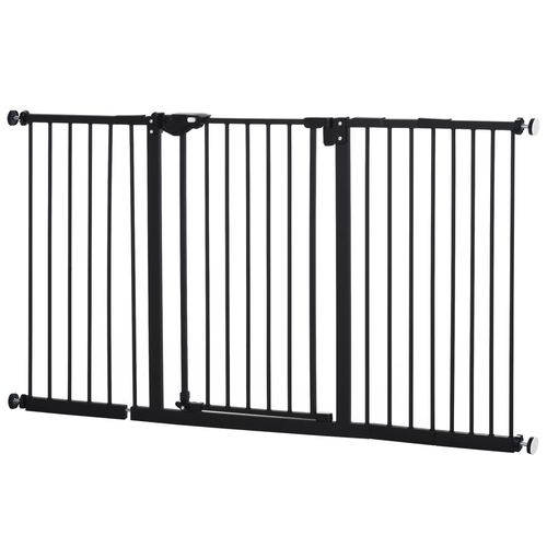 Keep your pets safely contained with the PawHut Adjustable Safety Gate, featuring 3 extensions, 4 adjustable pressure screws, and a sturdy steel frame for secure, tool-free installation.