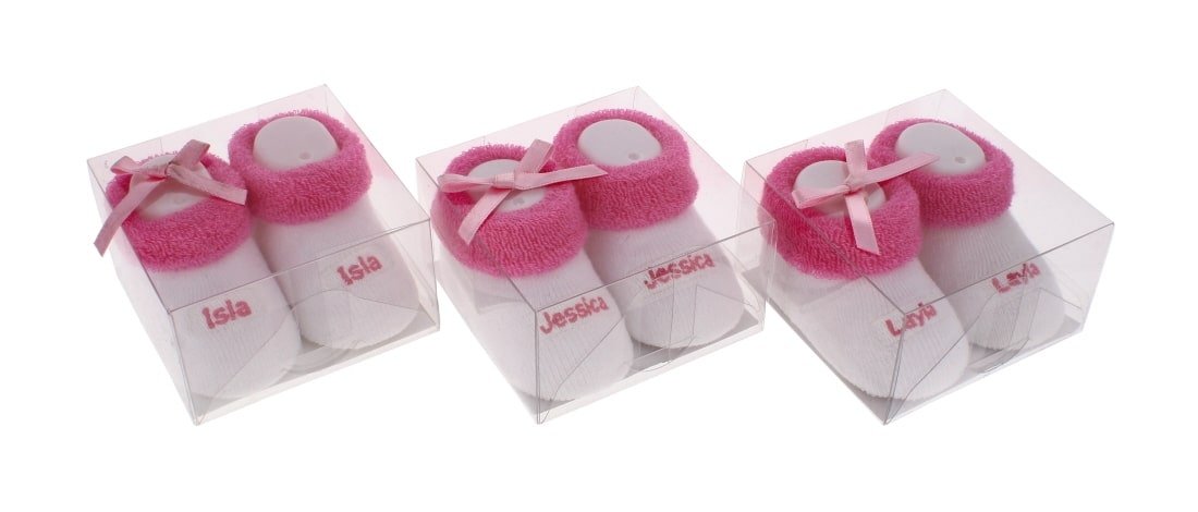 Featuring a cute pink and white design, this pair adds a sweet touch to any newborn outfit and makes an ideal gift for baby showers or new parents. Easy to slip on and secure, the socks maintain a comfortable fit without being tight or irritating. Durable enough for daily use and soft enough for sensitive skin, they bring practicality and style together in one adorable package.